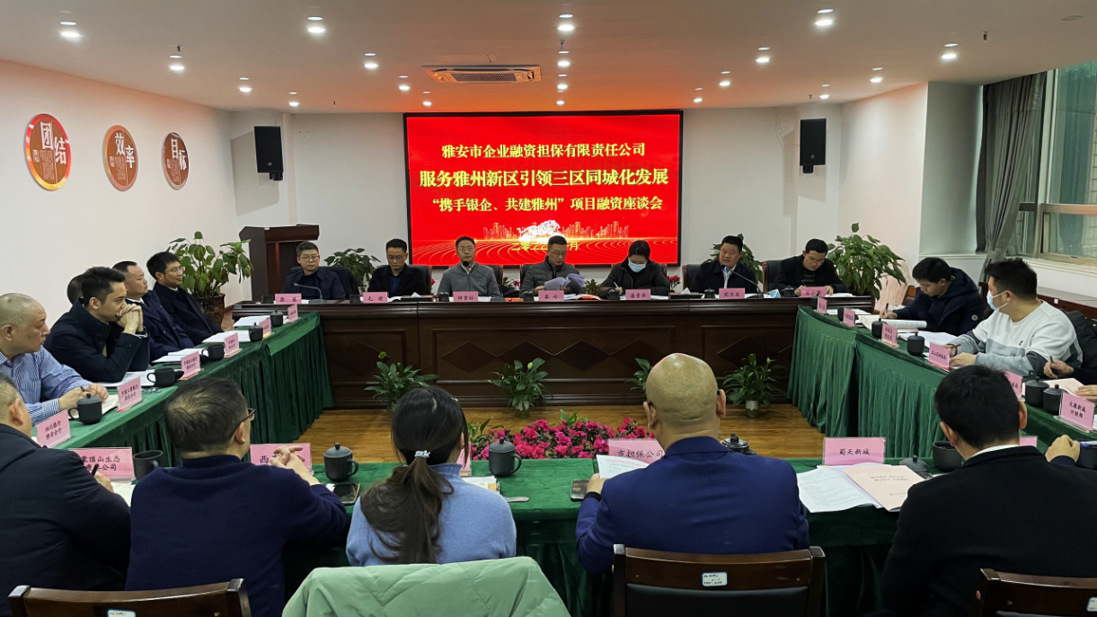 為深入貫徹落實中央、省、市相關(guān)會議精神,更好服務(wù)雅州新區(qū)引領(lǐng)三區(qū)同城化發(fā)展,助力雅安經(jīng)濟總量邁步跨入千億元臺階,1月25日,由雅安市財政局、市金融工作局指導,雅安市企業(yè)融資擔保有限責任公司(以下簡稱“雅安市擔保公司”)承辦的服務(wù)雅州新區(qū)引領(lǐng)三區(qū)同城化發(fā)展“攜手銀企、共建雅州”項目融資座談會召開,旨在充分發(fā)揮金融現(xiàn)代經(jīng)濟核心作用,為高水平建設(shè)雅州新區(qū),引領(lǐng)三區(qū)同城化發(fā)展貢獻金融力量。