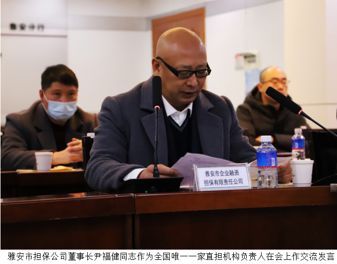雅安市擔保公司董事長尹福健同志作為全國唯一一家直擔機構負責人在會上作交流發(fā)言